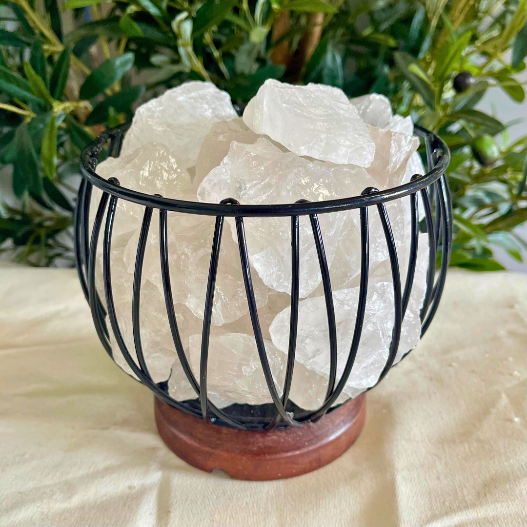 Clear Quartz Crystal Cage - The Ultimate Unblocker and Deep Soul Cleanser. The Most dominate, versatile multi-purpose healing stone, especially in cases of low self-esteem and healing wounds. It promotes decisiveness and reinforces clarity. Suggested Placement: Do not place anywhere in the home where you sleep as it is and active crystal