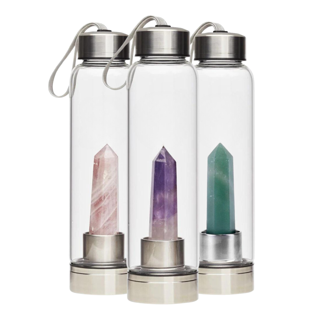 The crystal at the bottom of the bottle allows you to infuse your water with the spiritual energy and healing properties of a variety of natural crystals. Simply choose your favorite crystal - the water will naturally absorb the energy of the crystals as you drink.