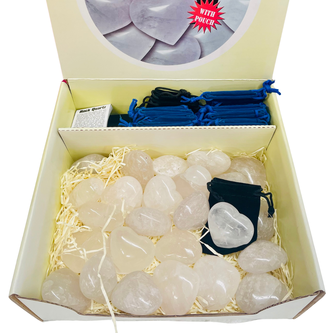 Crystal Heart CLEAR QUARTZ 30 Pieces with Display Box