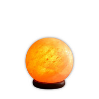 Carved Himalayan salt lamp, small orb shape with base.