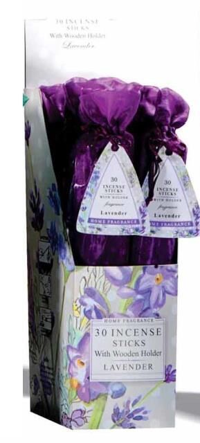 Home Fragrance Incense - Lavender A calming yet well rounded scent for the home. Full Box Includes -set of 12 Packs 30 incense sticks in one packet. This item comes with a beautiful wooden incense holder as well. Sell very well as they present beautifully as a counter line. Number one gift range as it has something for everyone’s tastes. Box Included. Also available in the range: Vanilla Honey - A delicate golden honey gently folded with rich, warm vanilla. Rose - It takes you into the heart of the rose as kissed by the morning light. Jasmine - A seductive scent used for centuries to entice. Asian Spice - Warm & welcoming with a hint of the exotic. Patchouli - An earthy and herbaceous scent with a rich green heart and a woody base.